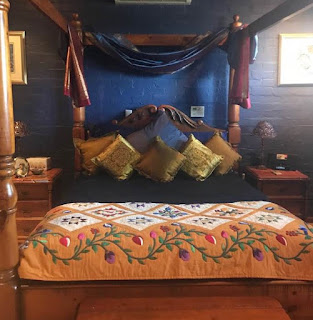 The quilt was finished and given to my brother and sister-in-law for a 2018 Christmas present. They loved the design and placement of colours. Below is a photo of the quilt on their bed.