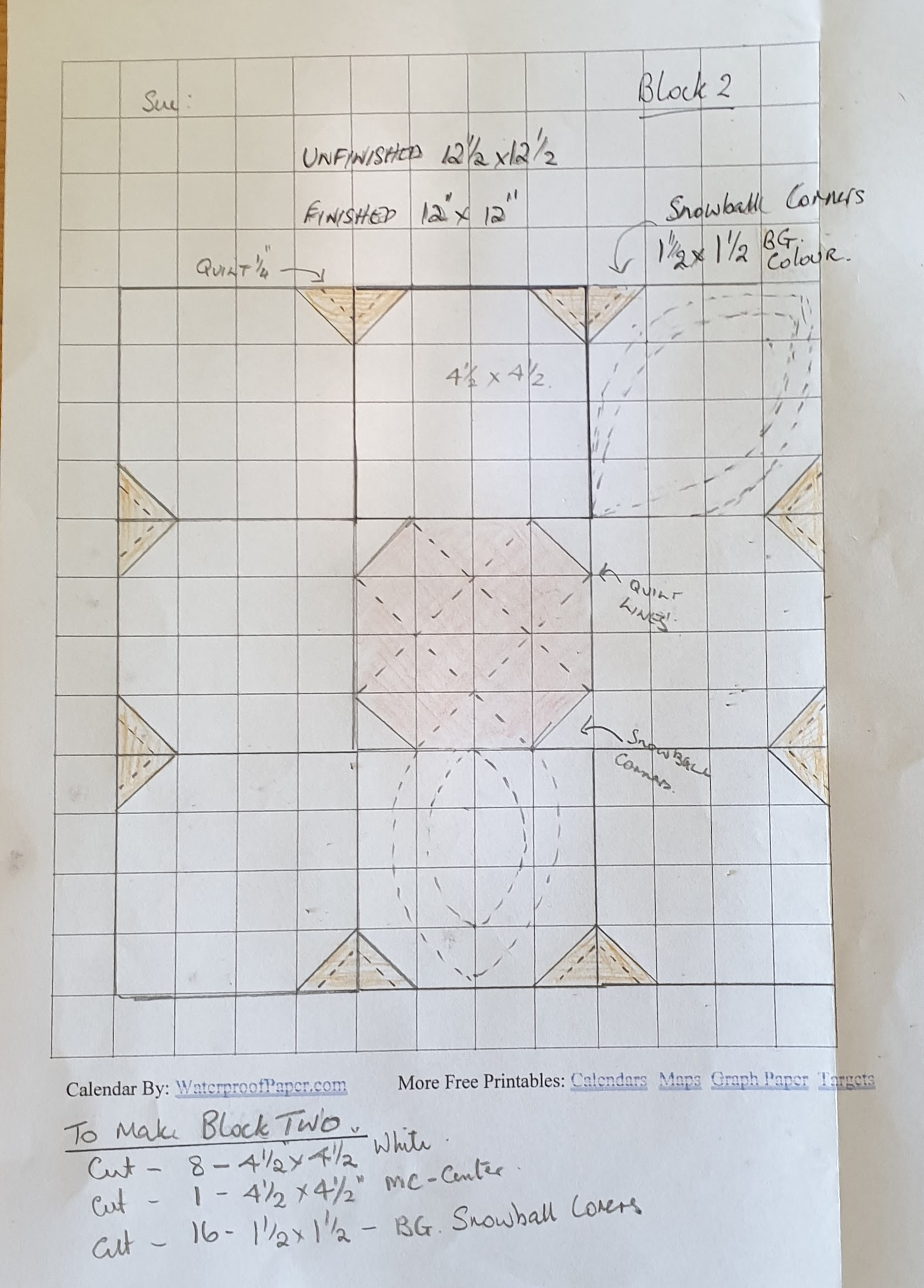 A friend from our quilting group loved this pattern, she only had a photo of the quilt so I said I would try and work out a pattern for her, as she wanted to make the quilt for her granddaughter. We didn't know the name of the quilt or who designed the original. I am going to call it Sue's quilt.